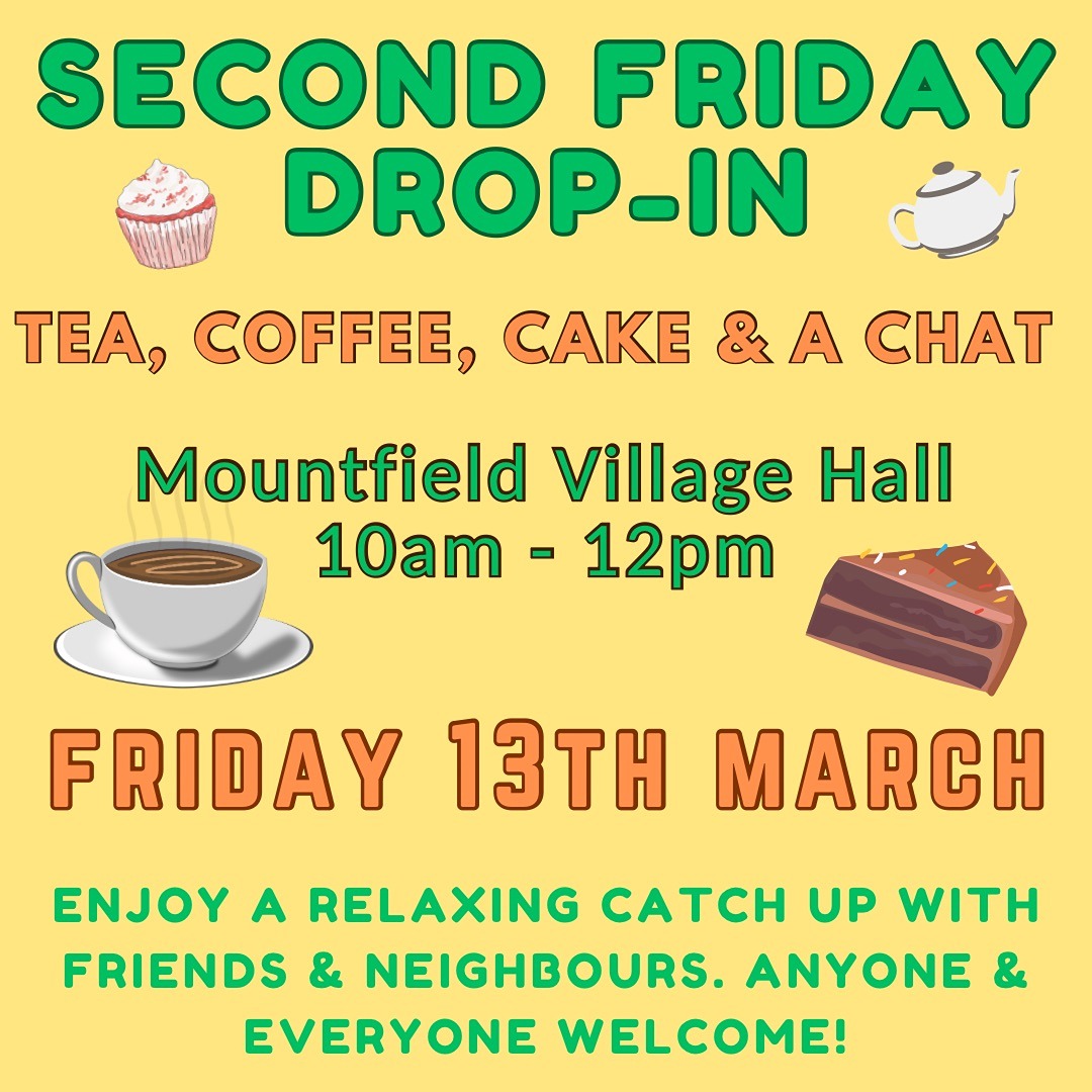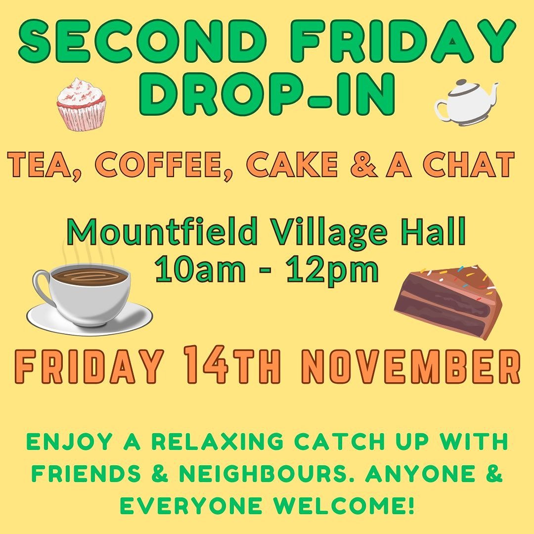 Second Friday Drop- 2nd Friday of every month 10am - 12pm. In A chance to meet up with friends and neighbours over a cuppa. Your might even make make new friends!